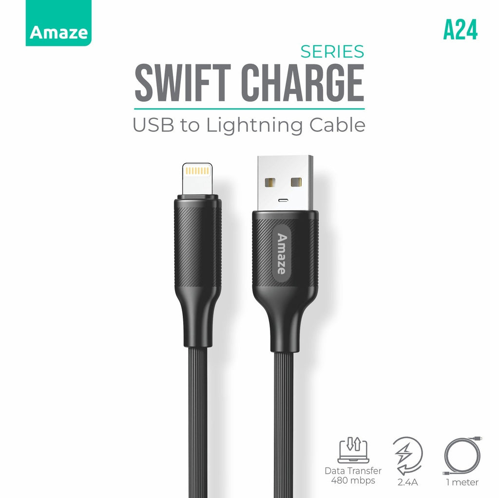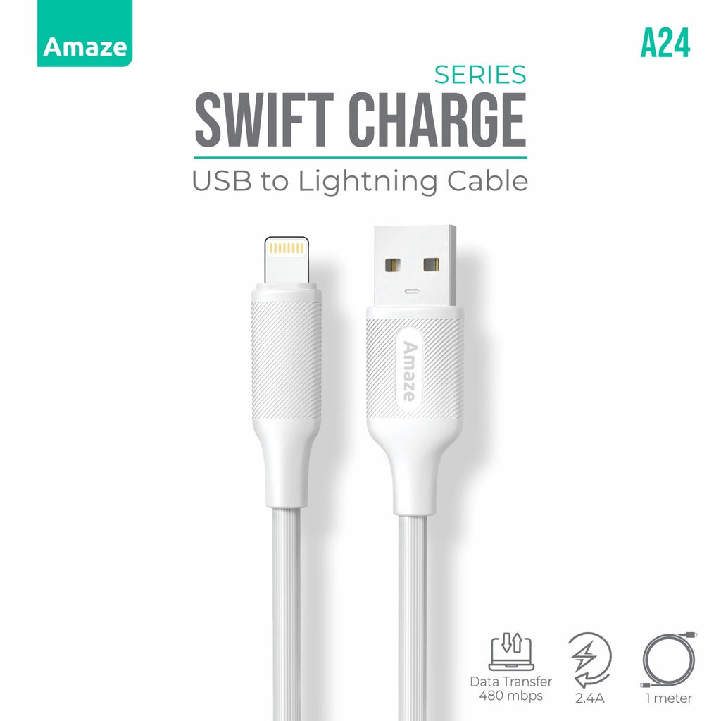 The Amaze Swift Series USB to Lightning Cable (2.4A, 1M, Model A24) is designed for Apple devices, offering efficient charging and data transfer. Here's an overview of its key features: