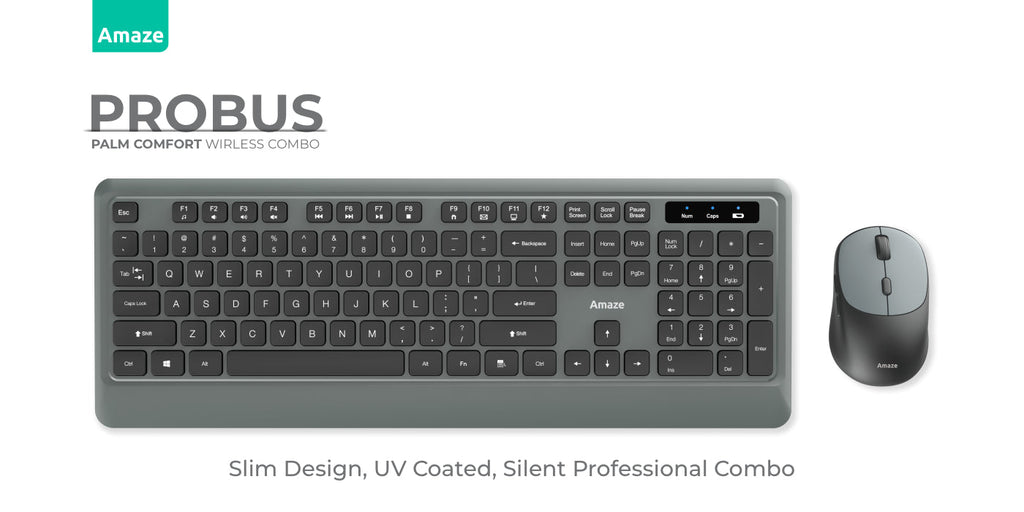 The Probus A745 Palm Comfort Wireless Keyboard & Mouse Combo delivers quiet, ergonomic, and reliable performance for home, office, or study. Both devices operate silently (<22dB) for a peaceful workspace.